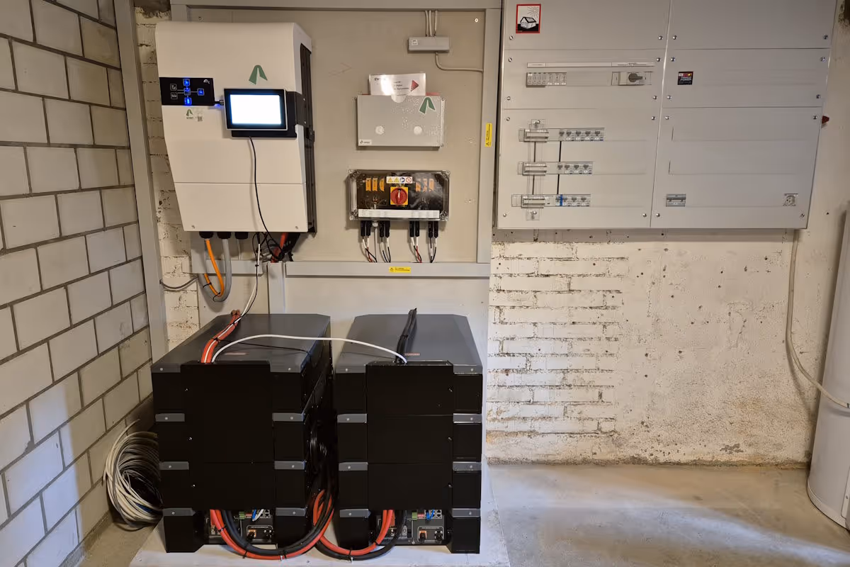 Die PV-Anlage mit 28 Modulen à 440 Wp hat eine Gesamtleistung von 12.3 kWp und ist mit einem next3 Wecshelrichter von Studer Innotec SA ausgestattet. Ebenfalls wurden eine 41.6 kwh-Batterie vom Typ Weco 5k3/48 VDC verbaut.