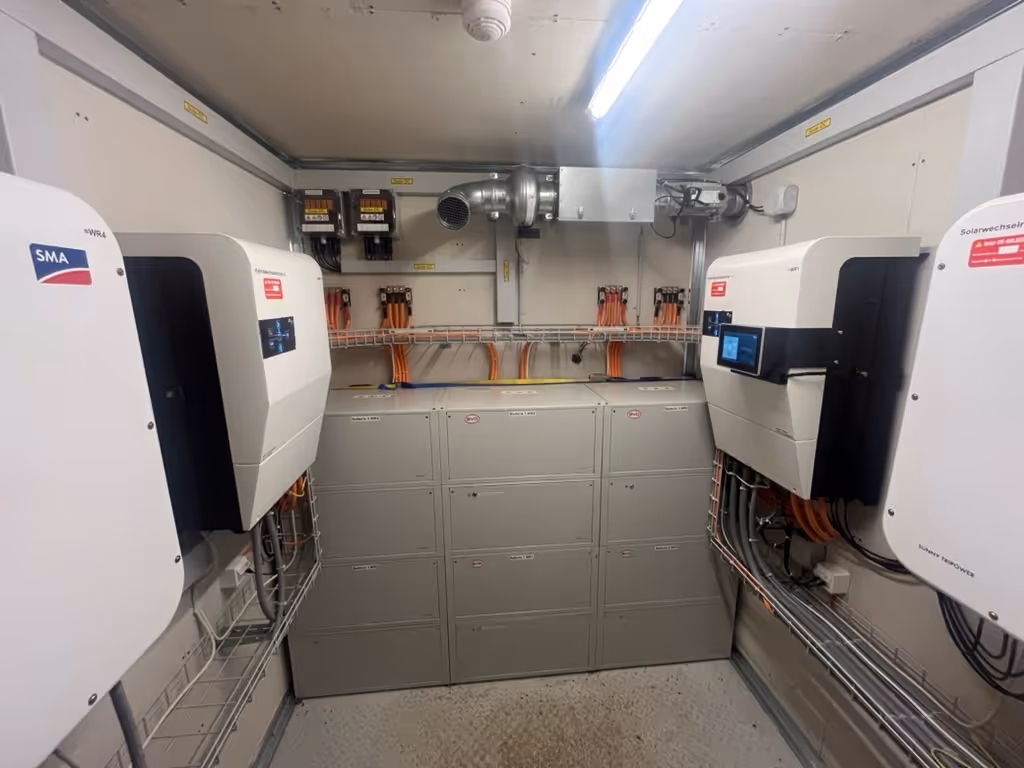 Wir durften eine Photovoltaikanlage mit einer Gesamtleistung von 86.4 kWp sowie einen Batteriespeicher mit 90.9 kWh Kapazität realisieren.