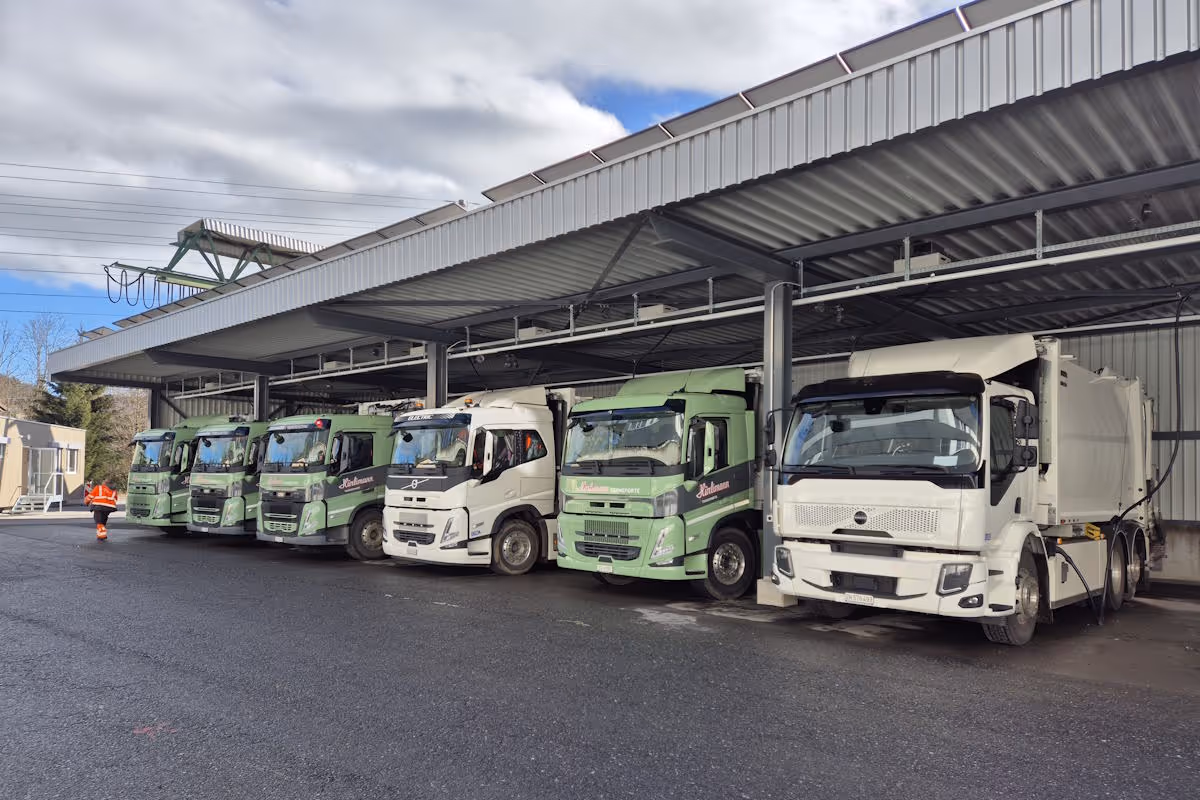 Die Firma Hürlimann Transporte AG erhielt den Zuschlag für die Abfall- und Grünabfall-Entsorgung des Kanton Zug. Vorrausetzung für den Auftrag, die Entsorgung hat ausschliesslich mit E-Lastwagen zu erfolgen. Mit dieser Ausgangslage erstellte die Risi-Immobilien AG auf dem Werkplatz Gulmmatt in Baar einen LKW-Unterstand für E-Mobilität.